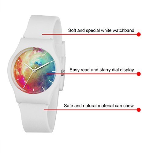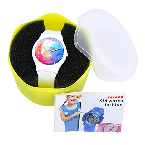 The Zeiger Kids Watches KW024 The Bold Numbers make it easy to read, plus the hour and minute hands are labeled so your child can learn faster.high-grade Silicon suitable for little wrist. watches for kidsFeatures: Case Material: Plastic Band Material: High Quality Silicone/Rubber Strap Waterproof: 3 ATM water resistance Clasp: Buckle Fit Wrist: 15.5-210mm Belt Width: 16mm Watch Face Size: 34mm Note: Water resistant (withstands rain and splashes of water, but not showering or submersion) Package Content: 1 X Watch 1 X BoxFeature