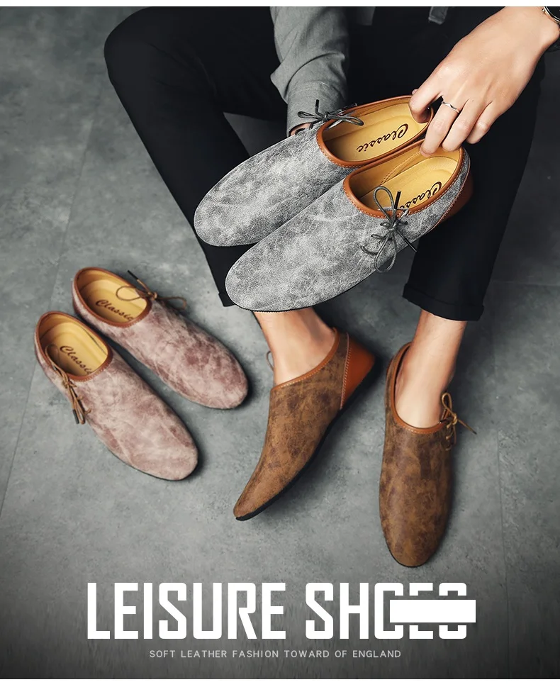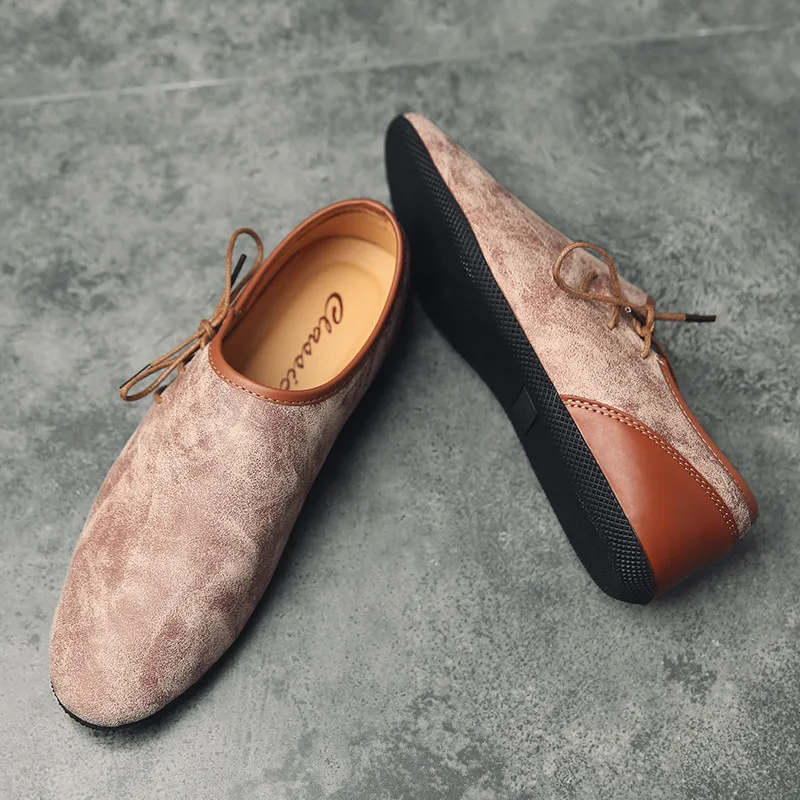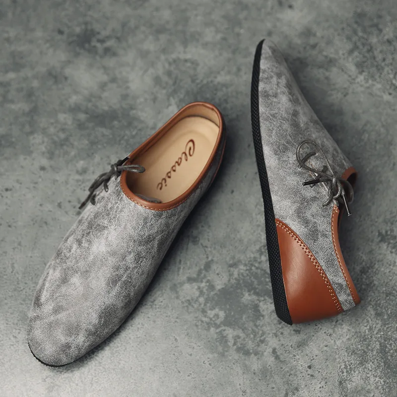 Leather shoes Color:Beige,Gray,Brown