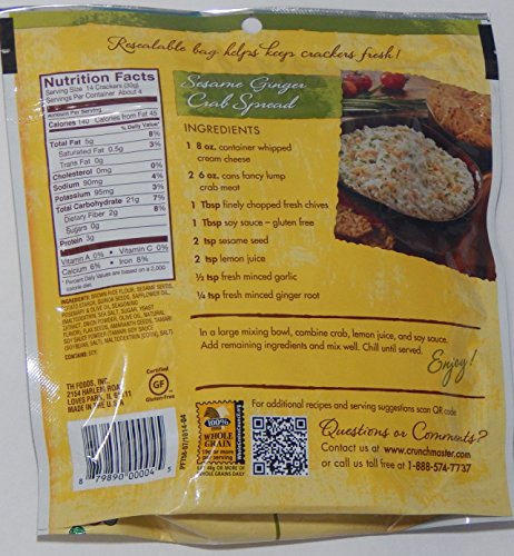 -. Feature : Crunchy oven baked multi-seed crackers / 100% whole grain, cholesterol free / Certified gluten-free, Non-GMO / Resealable bag helps keep crackers fresh