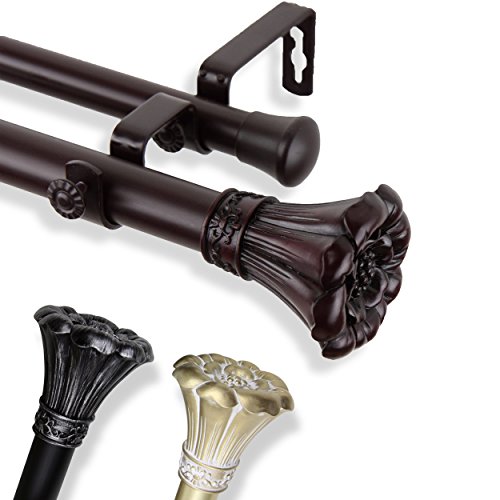 Studio : Window Trend Publisher : Window Trend Binding : Kitchen Product Description Design like a pro by redecorating your living space with a new drapery rod set and elegant finials. This rod will revitalize any window in your home. Set includes: Two (2) adjustable poles, mounting brackets, two (2) end caps on rod and two (2) finialsRod construction: 28-48 inch, 48-84 inch and 66-120 inch are one telescoping adjustable pole, 120-170 inch is a 3-piece telescoping poleFinial Size: 2-0.75 inches width x 2-0.5 inches height x 2-0.5 inches depthDiameter: 1 inch diameter front pole and .75 inch back poleBrackets quantity: 28-48 inch (2 pieces), 48-84 inch (3 pieces), 66-120 inch (3 pieces), 120-170 inch (4 pieces)Double brackets projection: 3-0.75 inch wall to back rod (the one closer to the wall), 6-0.75 inch wall to front rod (the one further to the wall)Materials: Steel rods, brackets, and resin finialsThe digital images we display have the most accurate color possible. However, due to differences in computer monitors, we cannot be responsible for variations in color between the actual product and your screen. Material: Metal, ResinComponent: Curtain RodsFinish: Black Finish, Mahogany FinishColor: Black, Gold, Brown 0