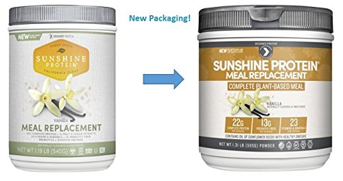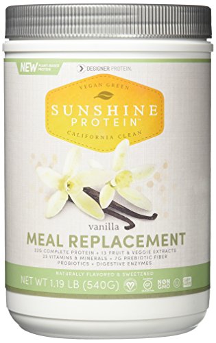 -. Title : Designer Protein Sunshine Complete Plant-Based Meal Replacement, Vanilla, 1.19 Pound
