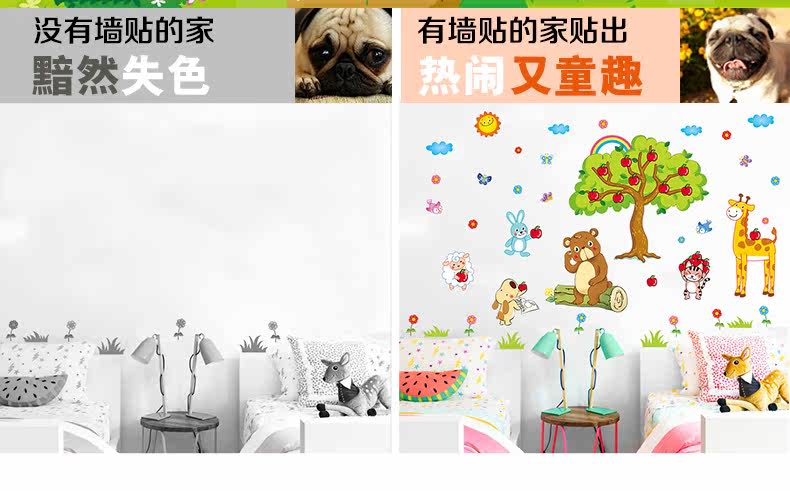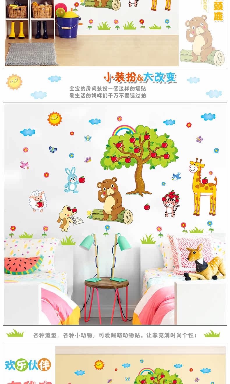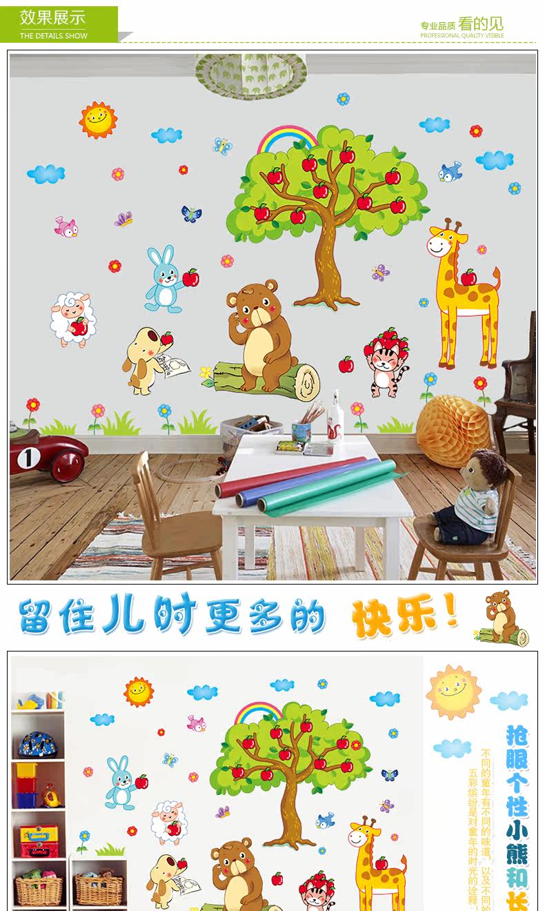 可爱卡通苹果树儿童房间卧室幼儿园宿舍装饰可移除墙贴画墙上贴纸