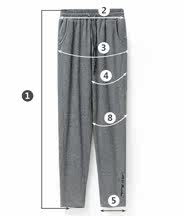 | 尺码 | ①裤长 | ②腰围 | ③臀围 | ④大腿围 | ⑤脚围 | ⑥前裆 | ⑦后裆 | ⑧膝围 | ||