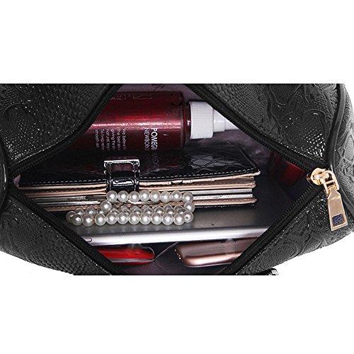 -. Feature : Made of High Quality PU Leather (polyurethane and leather) / Biggest Size:12.6 inch(L) * 4.3 inch(W) * 10.2 inch(H), shoulder bag:11.8 inch(L) * 2.8 inch(W) * 8.7 inch(H), handbag: 10.6 inch(L) * 4.7 inch(W) * 7.1 inch(H), small handbag:6.3 inch(L)* 2.4 inch(W)* 3.5 inch(H), the biggest comfortably holds an iPad Mini, iPhone and so on. / inside: 1 interior big pockets,1 small zipper pockets and 2 small pocket style organizers for phone and cards. / Zipper closure / Beautiful design,Easy to Match Summer Dress.Charming & Stylish Baggood choice for most girls , women.