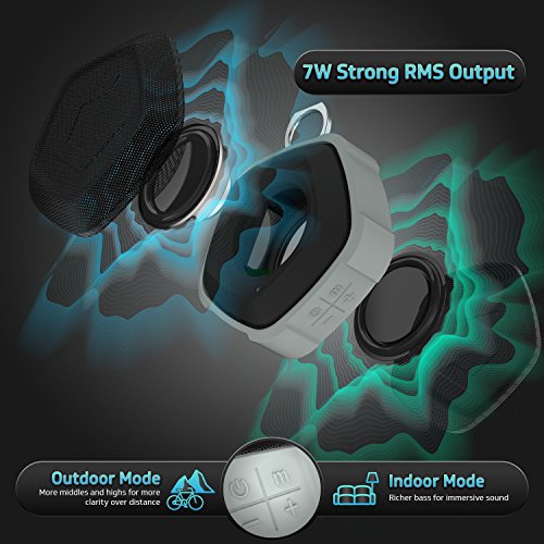 7W Strong RMS Output: Seamless streaming crystal clear sound from your digital devices. You can choose "Indoor" or "Outdoor" mode. Indoor mode will have richer bass while outdoor mode will have more middles and highs for more clarity over the distance.