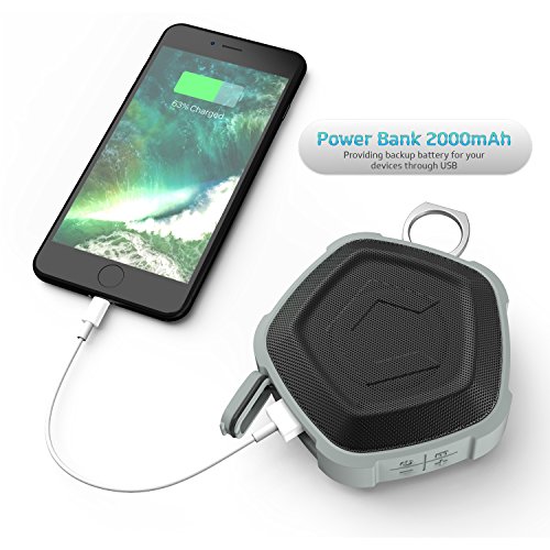 More than just a wireless speaker: It is also a power bank(2000mah) which can charge your other devices. This battery supports up to 6 hrs playing time.