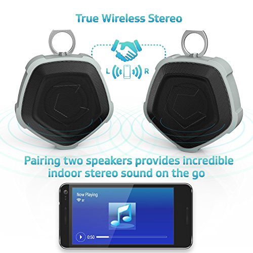 Cobble Pro [2-Pack] IP 67 Waterproof Shockproof Portable Sporty Outdoor Bluetooth Speaker 4.2,Strong Bass/Punchy Sound/True Wireless Stereo/NFC One Tap Pairing/Built-in 2000mAh Power Bank,Black/Gray