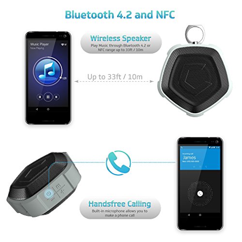 Bluetooth 4.2 and NFC: it connects faster and more stable with consuming less energy. It has built-in MIC with the handsfree function, so you can pick up a call anywhere during it is connected to your smartphone. The connection range is up to 33 ft.