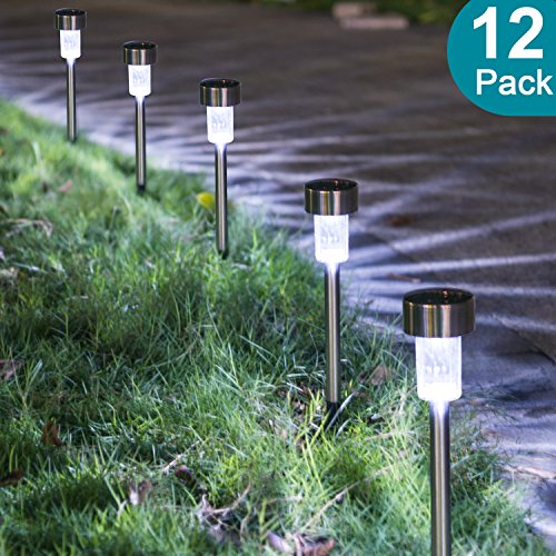 Sunnest Solar Powered Pathway Lights, Solar Garden Lights Outdoor, Stainless Steel Landscape Lighting for Lawn/Patio/Yard/Walkway/Driveway (12 Pack)