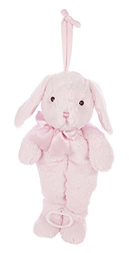 This incredibly soft, plush Cottontail Hush-A-Bye musical pull is complete with silky satin bow. When the pull string is extended, Cottontail softly plays Brahms' Lullaby to help the little one gently fall asleep to the soothing tune. With embroidered eyes to ensure safe use for all ages, Cottontail musical pull is also designed with a sturdy tie for safe and easy attachment to crib or stroller. This lullaby pull is from the Bearington Baby Collectin. The Bearington Collection, known worldwide for its outstanding quality and award winning design, gives you the assurance that your gift will be one that is treasured for years to come. Approved for ages 0 and up.Feature