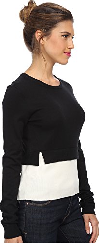 Color blocked sweater features dual layers for a chic look. Round neckline and long sleeves. Ribbed knit trim. Pull-on design. Banded hemline. 43% silk, 30% cotton, 27% rayon. Hand wash cold, dry flat. Imported.
