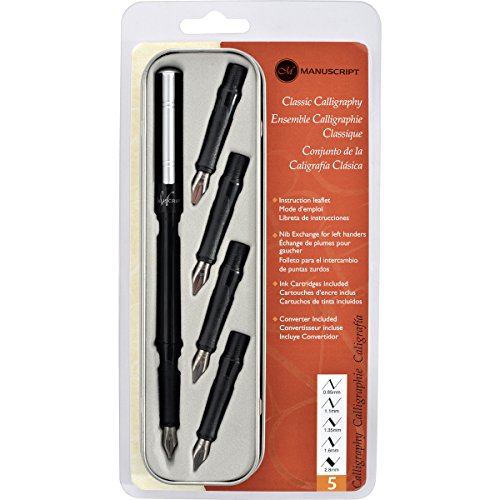 -. Brand : Manuscript Pen -. EAN : 0999992705423 -. Feature : MANUSCRIPT PEN-Manuscript Classic Calligraphy Set / The art of calligraphy is about the visual expression of words / Develop your skills and express your ideas through beautiful designs / This set includes one Classic pen, one converter, 7-1/4x2x1 inch storage tin, five nibs ranging from fine to 4B, 4 color cartridges and instruction leaflet -. Label : Manuscript Pen -. Manufacturer : Manuscript Pen -. Model : 20496191 -. MPN : MC1185 -. PackageQuantity : 1 -. PartNumber : MC1185 -. ProductGroup : Wireless -. ProductTypeName : HOME_FURNITURE_AND_DECOR -. Publisher : Manuscript Pen -. Studio : Manuscript Pen -. Title : Manuscript Classic Calligraphy Set- -. UPC : 999992705423
