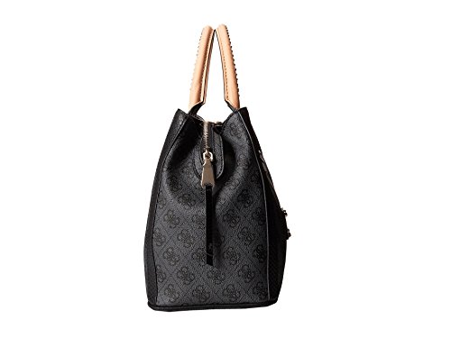 Dual studded top handles with 4.5" drop. Removable, adjustable cross-body strap with 23" drop