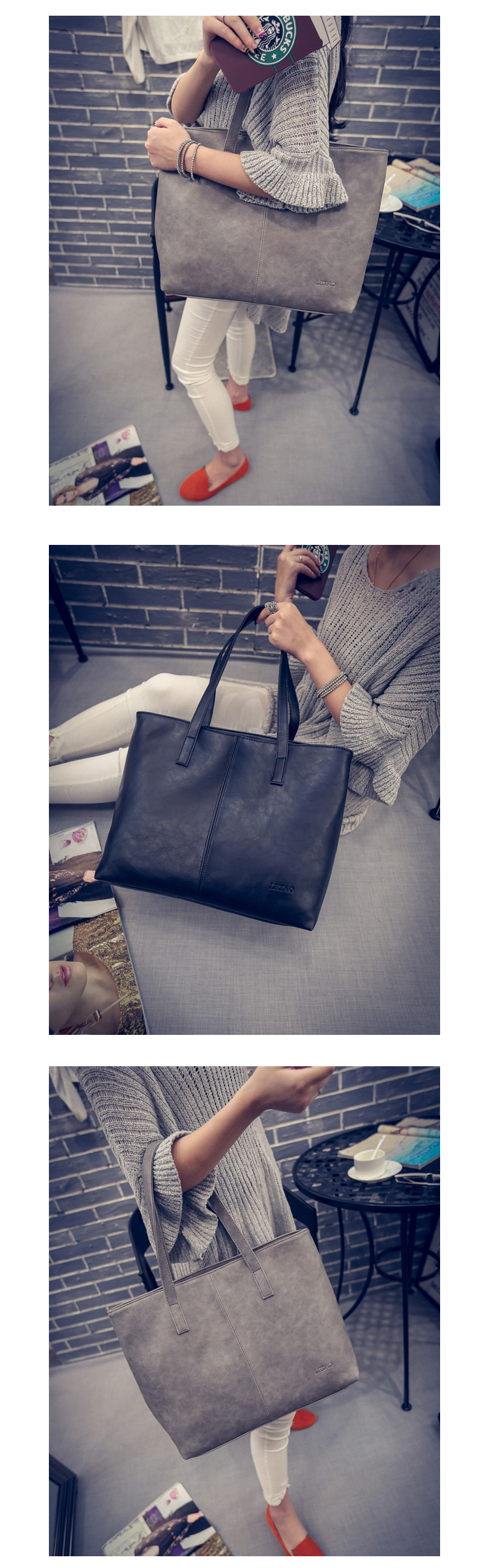 Big shoulder bag on the back of the hand Shopper bag college student suitcase Size 20 women's casual