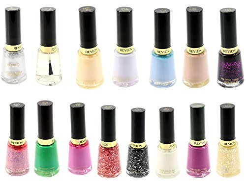 -. Feature : Revlon Nail Polish Beautiful Design / Gorgeous colors on your fingers / Made in USA / 928 Silver Dollar, 771 Clear, 005 Sheer Blush, 211 Charming, 410 Dreamer, 380 Elegant, 761 Scandalous, 260 Girly, 770 Heavenly, 370 Smoldering, 571 Posh, 250 Flirt, 678 Daring Graffiti, 732 Graffiti Top Coat, 008 Ethereal, 01 Beautiful / Note: You will Get 5 random colors from the picture shown above