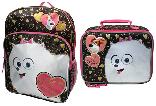 -. Brand : AI -. Color : black white pink gold -. Department : girls -. EAN : 6500688593671 -. Feature : Featuring Gidget. / Polyester backpack and lunch box featuring lenticular panel art, 16 x 12 x 5 inches / Padded back and shoulder straps with reflective safety tape, locker loop / Front zip pocket, 2 side mesh pockets / Classic rectangular lunch bag with lenticular front panel art, carrying handle -. ProductGroup : Apparel -. ProductTypeName : LAGE -. Size : 16 x 12 x 5 -. Title : The Secret Life Of Pets Backpack & Lunch Bag Set