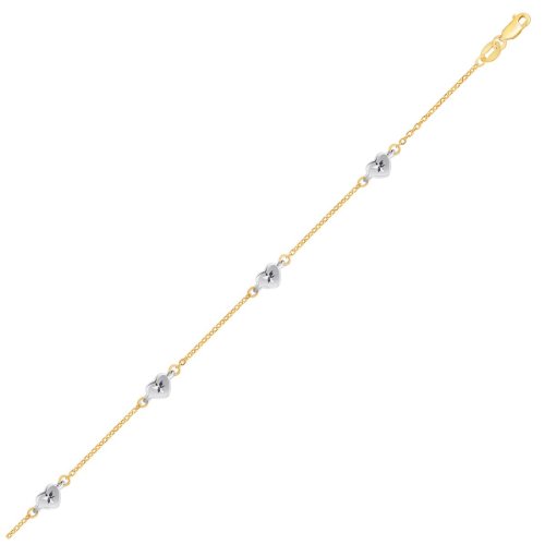 -. Title : 14K Two Tone Gold Anklet with Diamond Cut Heart Style Stations