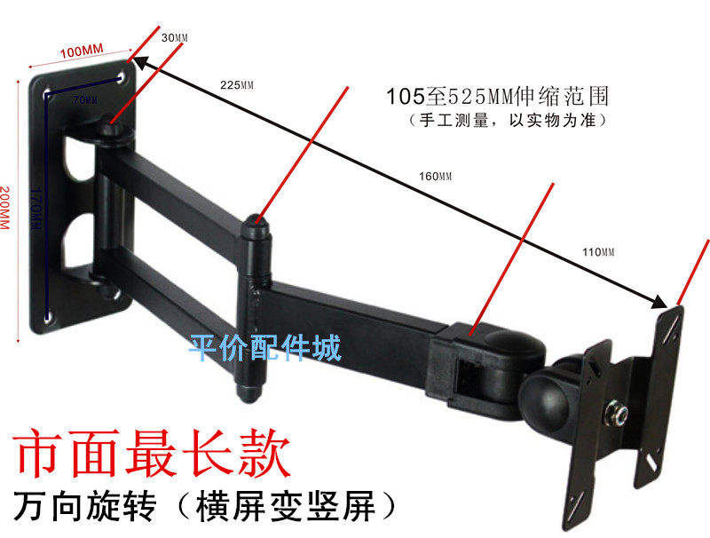 适用尺寸:液晶10-20寸内, LED超薄的22寸内 (送螺丝/打墙配件/内六角工具等)