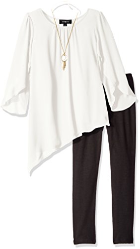 Amy Byer Big Girls' Tulip Sleeve with Asymmetrical Hem and Legging, Plum, Large