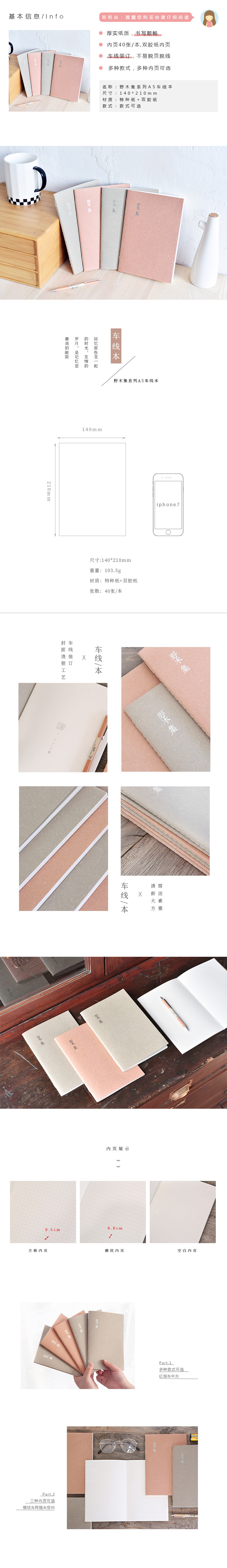 野木集系A5车线本Z学生简约笔记本子空白横纹方格记事本