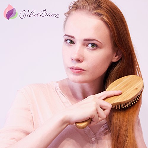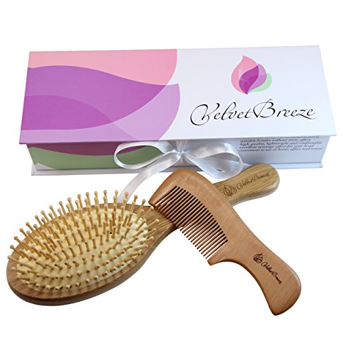 VelvetBreeze - Natural Bamboo Hair Brush with Wooden Bristles and Peach Wood Comb Set - For Women's All Types of Hair - Improve Your Hair Growth -...