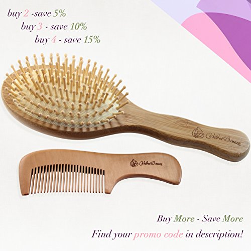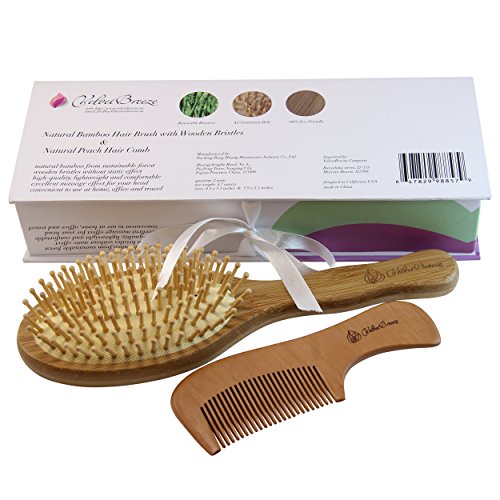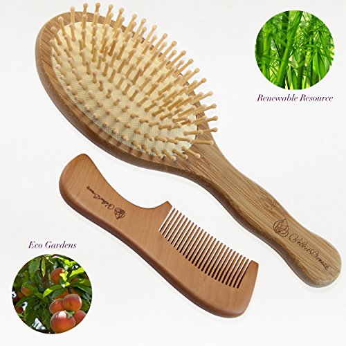PERFECT QUALITY BAMBOO DETANGLER HAIR BRUSH AND PEACH WOODEN COMB: gives your hair a natural shine and beauty, preventing the appearance of split ends and brittle hair.