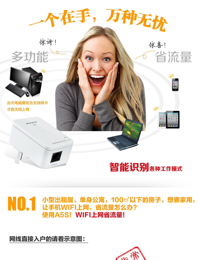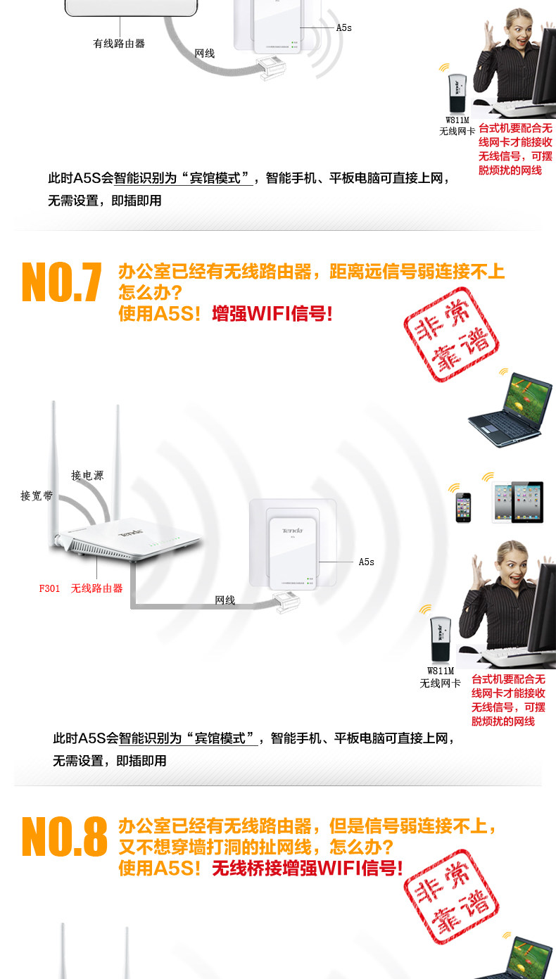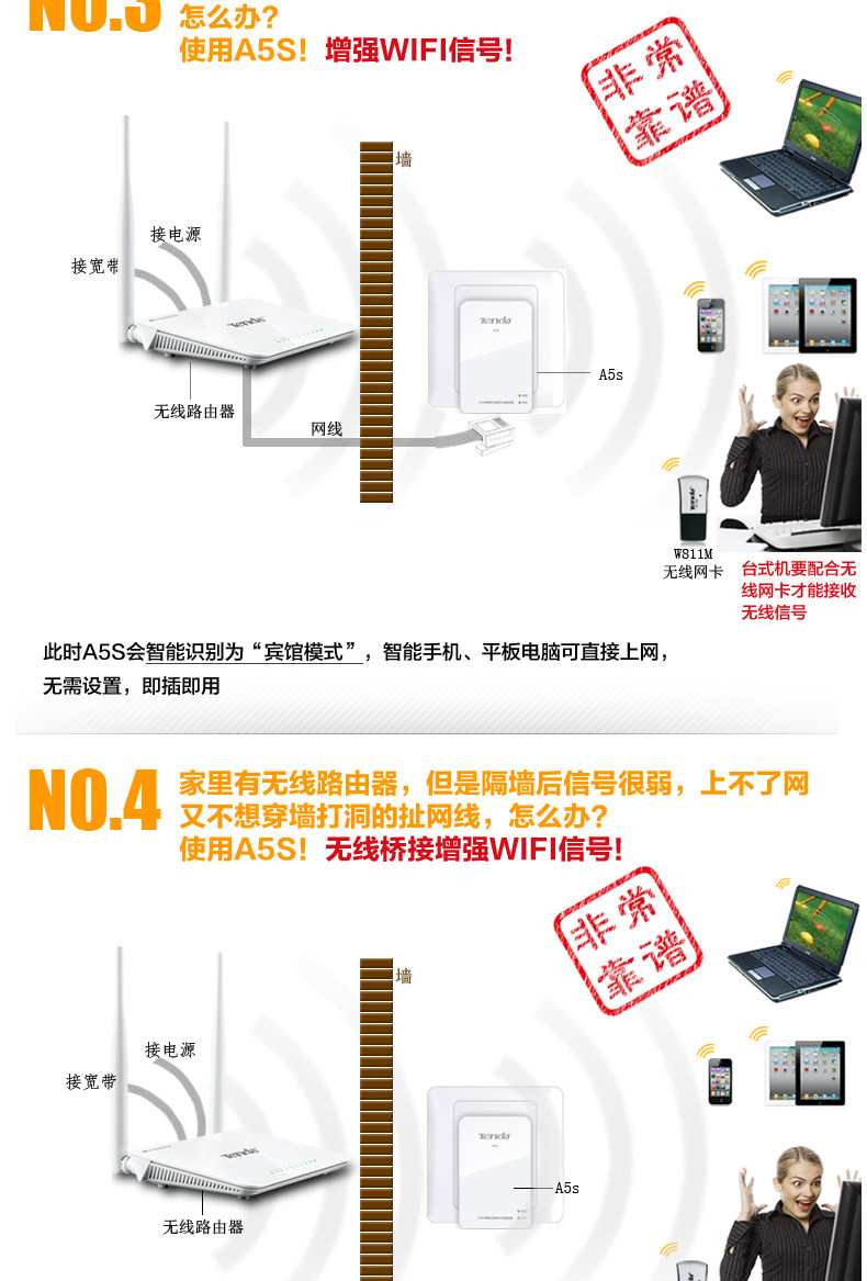 Q: A5S covering 100 square meters of houses, one or two common walls blocking is not a problem, and routers signal with antenna almost. Router encryption, anti rub network, encryption is very simple, the product comes with detailed instructions.