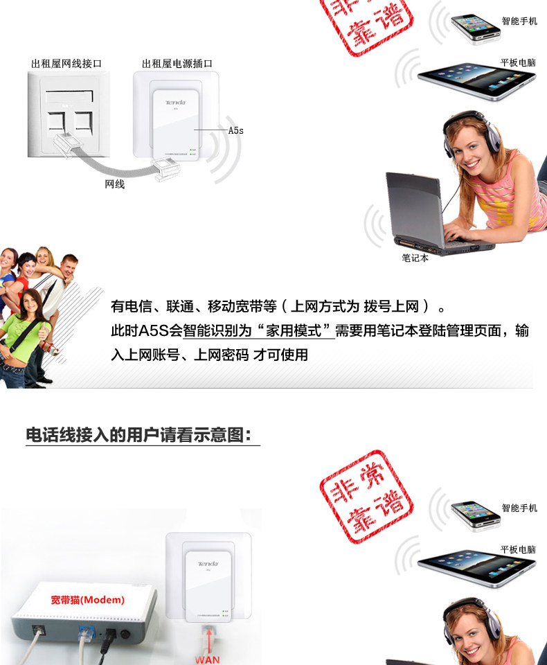 Home without a router, only broadband cat (or only the network cable), you need to click on a broadband connection to the Internet, that are to be set up the account password, you can use A5S wireless router mode.