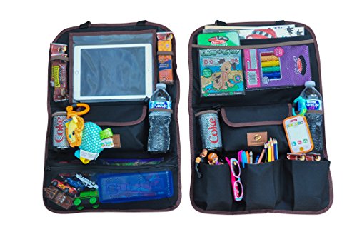 Car Back Seat Organizer Set of 2 Multi-Pocket Travel Storage With Touch Screen iPad Tablet Books Magazines Toys Holder