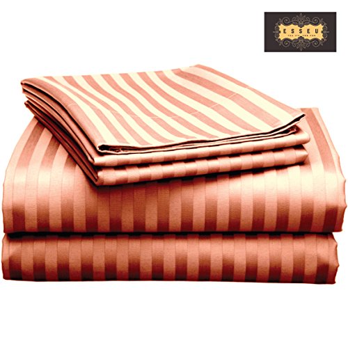 300 Thread Count 100% Cotton Sheet Set, Stripe (1 cms), Soft Sateen Weave,Queen Sheets, Deep Pockets,Home Collection,Luxury Bedding-Bestseller- Super Sale 100% Cotton, by ESSEU (Queen, Burgandy)