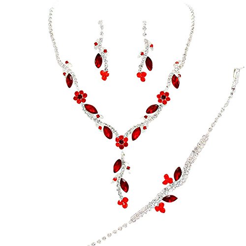 -. Title : Y Drop Pretty Ruby & Dark Red Floral Crystal Prom Bridesmaid Wedding Necklace Jewelry Set DO5