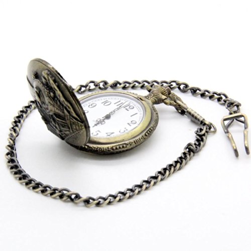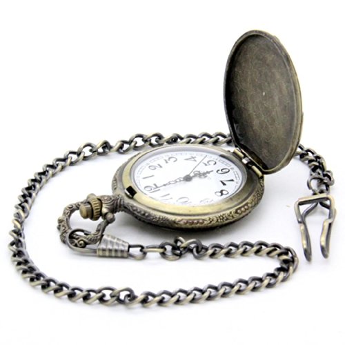 -. Feature : Retro quartz pocket watch / Vintage bronze chain and case / Unique train design / One side open pocket watch / Daily Waterproof (No Swimming)