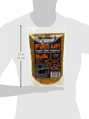 -. Binding : Misc. -. Brand : Diggin' Your Dog -. Color : Orange -. EAN : 0799475705410 -. Feature : USA Grown and Harvested Pumpkin and Apple Fiber digestive supplement for dogs and cats / Effective natural anti-diarrheal for dogs and cats / No more canned pumpkin that goes to waste. Use what you need when you need it. Shelf stable for 24 months. Convenient resealable USA made packaging / Great for transitioning to a new food, travel, camping, pet related events and as a daily digestive supplement to promote regularity / Can be mixed with water or fed dry and pets love the taste -. Label : Diggin' Your Dog -. Manufacturer : Diggin' Your Dog -. Model : 521 -. MPN : 521 -. PackageQuantity : 1 -. PartNumber : 521 -. ProductGroup : Pet Products -. ProductTypeName : PET_SUPPLIES -. Publisher : Diggin' Your Dog -. Size : 16 oz -. Studio : Diggin' Your Dog -. Title : Diggin' Your Dog 1 Piece Firm Up Pumpkin Bulk Super Supplement, 16 oz -. UPC : 799475705410