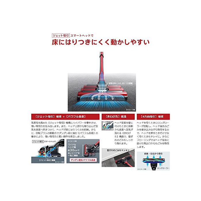 히타찌(HITACHI) 히타찌 싸이클론식 클리너(자주파워 브러시) 루비 레드【청소기】HITACHI 파워 부스트 싸이클론 CV-SD900-R