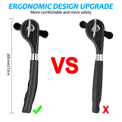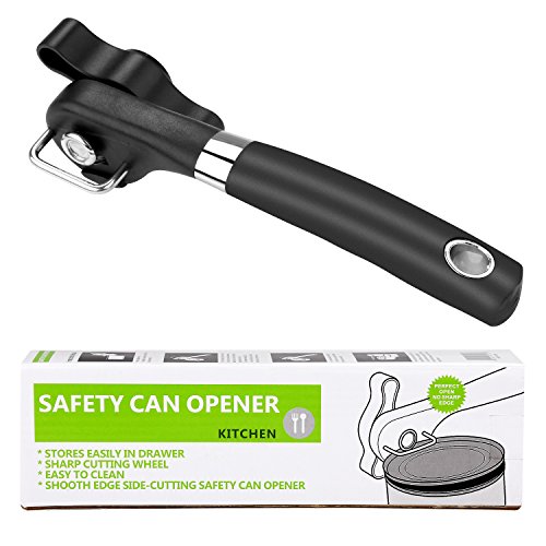 - SAFETY GUARANTEE: You no longer have to worry about cutting yourself when opening cans with the smooth edge cutting safety mechanism. This new can opener was produced in such a way that it creates a blunt, smooth edge making the edges safe to the touch. The ergonomic non-slip design allows for smooth cutting when opening cans without the hand slipping.