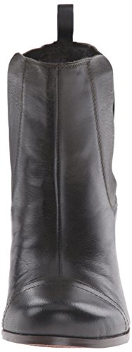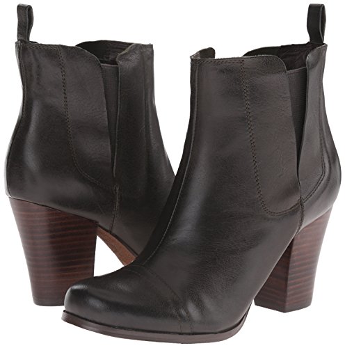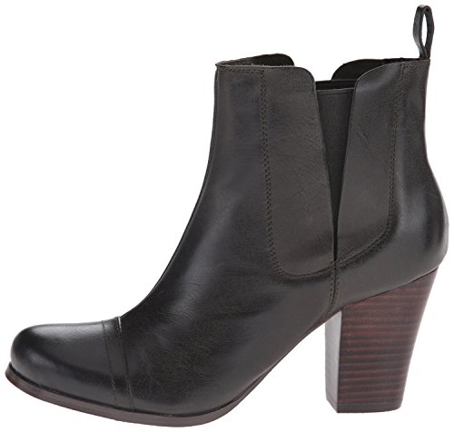 A dressy, high-heeled boot that takes its style cues from this season's craze for the Chelsea boot silhouette: Miz Mooz's "Sarah," with inside and outside slashes that reveal elastic gussets, a back pull tab, a stitched toe cap.Feature