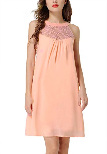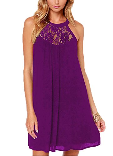 Design: Halter Neck, Back keyhole, With Buttons, Lace Patchwork, Sleeveless ,Solid Chiffon Swing Dress.