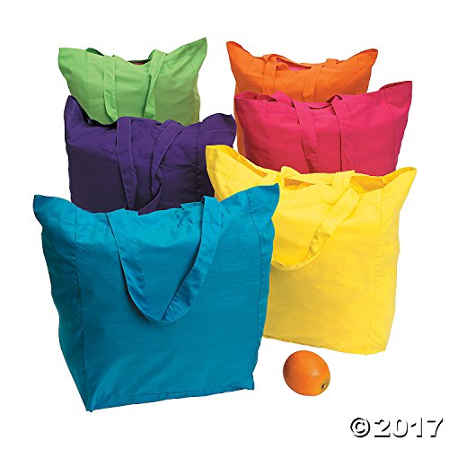 Lot of 12 Large Cotton Bright Neon Color Tote Bags Party Craft Favors