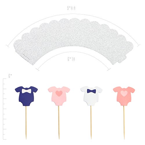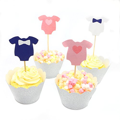 - Included in total 12pcs toppers and 12pcs silver wrappers . 4 colors baby's shirts with bow ties, there are white, blue, deep pink and light pink.