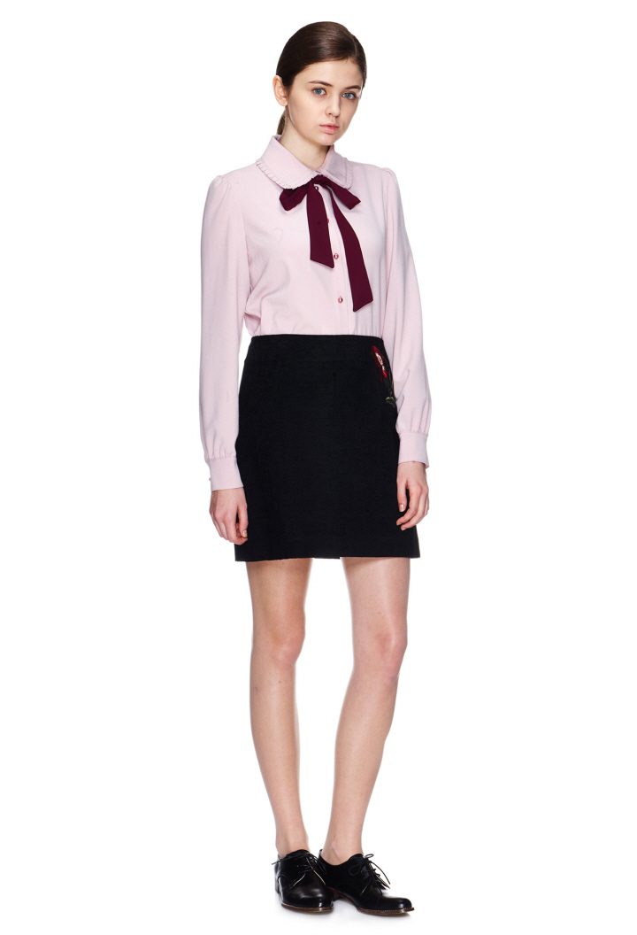 세미 A라인 실루엣의 스커트입니다. 베이직한 스타일에 플라워 자수가 페미닌한 무드를 연출합니다. 뒷지퍼가 있어 탈착장이 편리하며, 심플한 상의와 함께 코디시 포인트 아이템으로 활용하기 좋습니다.