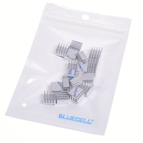 BCP Pack of 20 Aluminum Heatsink Cooler Circuit Board for Raspberry Pi, IC chips, Mosfet with Adhesive Tape, 14x14x6mm