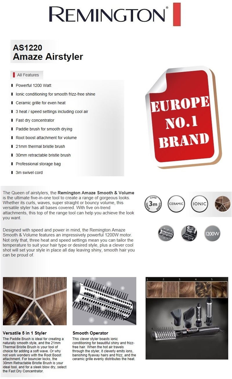 Specifications of REMINGTON Amaze Airstyler Ionic AS1220