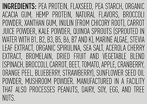 20 grams complete plant-based protein from a multisource blend including pea protein, hemp protein, and flaxseed