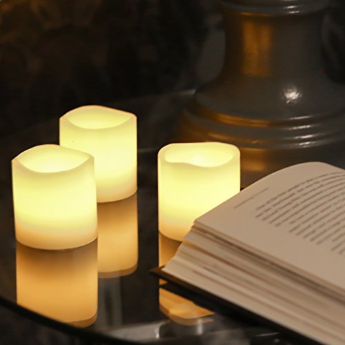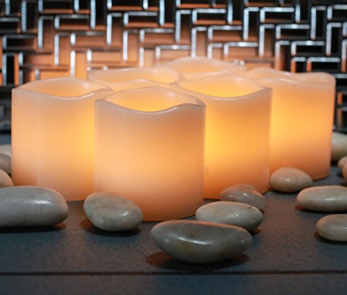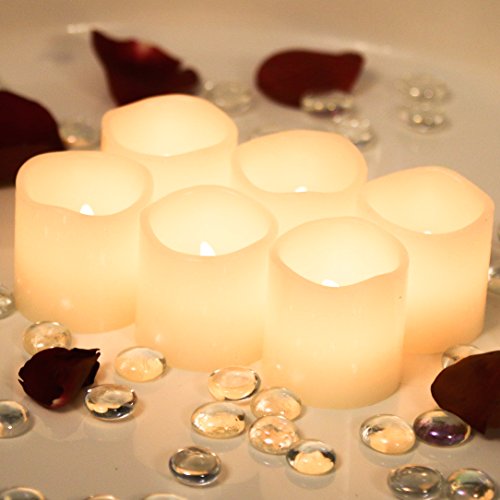 Flameless Candles * Set of 6 Real Wax with 6 Extra Batteries Included FREE! Unscented and Ivory in Color * 2" By 2" Votive Style LED Flickering Lights * Great Gifts for any Occasion * Home Decor * Weddings * Romantic Settings