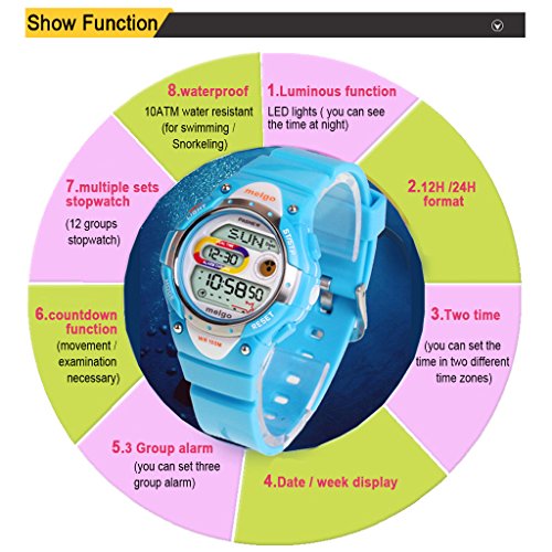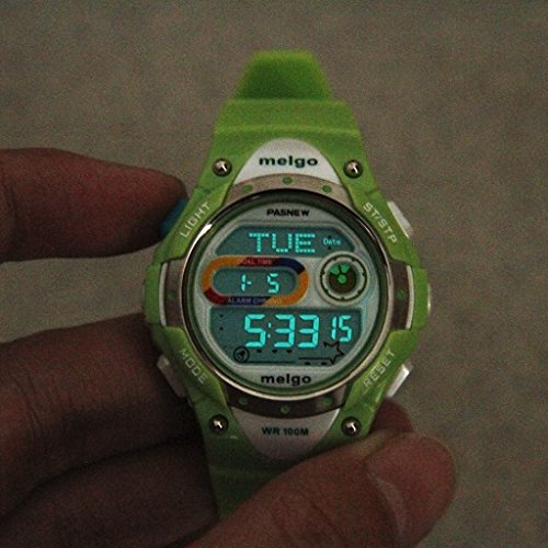 -. Binding : Watch -. Department : Unisex-child -. Feature : Luminous function: LED lights ( you can see the time at night) / 12H /24H format,Two time (you can set the time in two different time zones) / 3 Group alarm (you can set three group alarm) countdown function (movement / examination necessary) / Multiple sets stopwatch (12 groups stopwatch) waterproof: 10ATM water resistant (for swimming / Snorkeling) / Long battery life(2-3 year) -. Label : Pasnew -. Manufacturer : Pasnew -. MPN : 2001DG -. PartNumber : 2001DG -. ProductGroup : Watch -. ProductTypeName : WATCH -. Publisher : Pasnew -. Studio : Pasnew -. Title : Cool Pasnew LED 100M Waterproof Digital Sport Watch for 5-15 Years Old Boys Girls Kids Students (Green)