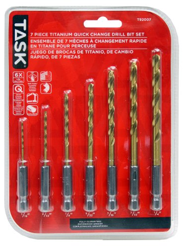 Task Tools T92007 7-Piece Quick-Change Titanium-Coated HSS Drill Bit Set, 1/16-Inch Through 1/4-Inch Bits In Plastic Case