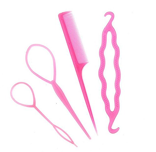 Set of 4 Plastic Pull Hair Needle Dish Hair Comb Tools Bun Maker Bump Up Clip Hairpin DIY Hair Styling Tools Accessories Magic Hair Braid Ponytail Maker...