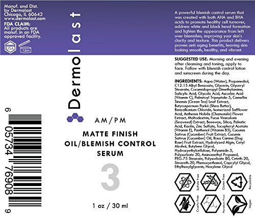 ≈ QUALITY IN ABUNDANCE ≈ Don’t settle for less! Dermolast™ prides itself on being industry leaders when it comes to improving on the old norms of Matte Finish Oil / Blemish Control Serum formulation. We use humanely sourced Oligopeptide-68, Hydroxycinnamic Acid and Aloe Vera. Dermolast™ Matte Finish Oil / Blemish Control Serum has the sharpest premium formulation on the market.