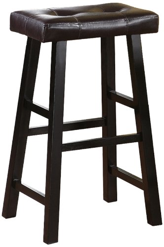 -. Title : Set of 2, Country Series Bar Stool - 29"H - in Espresso Finish with Faux Leather