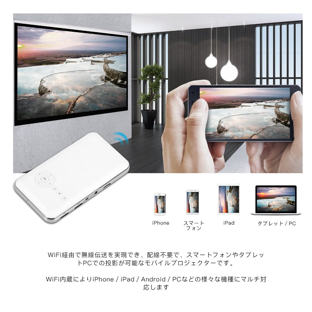 It is a mobile projector that can realize wireless transfer via WiFi and can project smartphones and tablets.